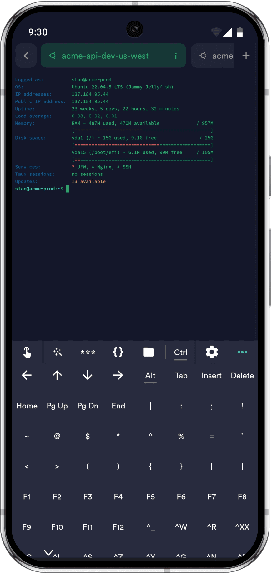 I've been configuring a raspberry pi running a headless Linux install entirely from my phone and accessing the terminal via Termius has been sleek, clean and unobtrusive. The snippets feature has been wonderful also for storing common bits of code I use frequently but struggle to remember commands or syntax for. One note on snippets though, I haven't been able to find a way to click them such that they paste into the terminal without immediately executing.